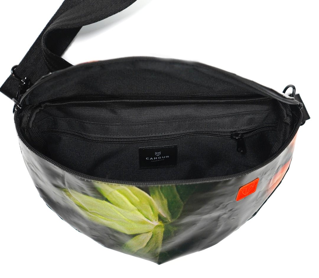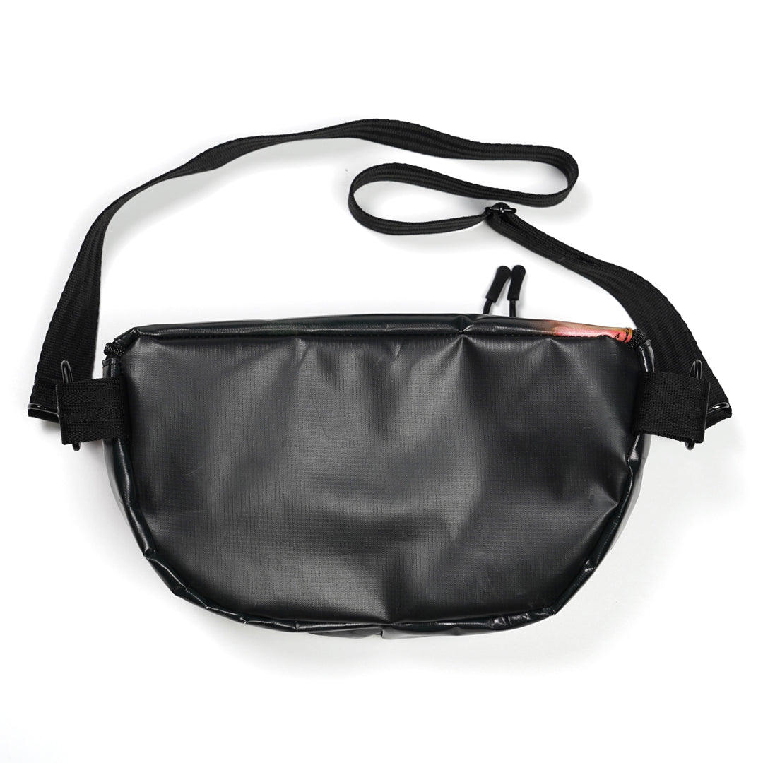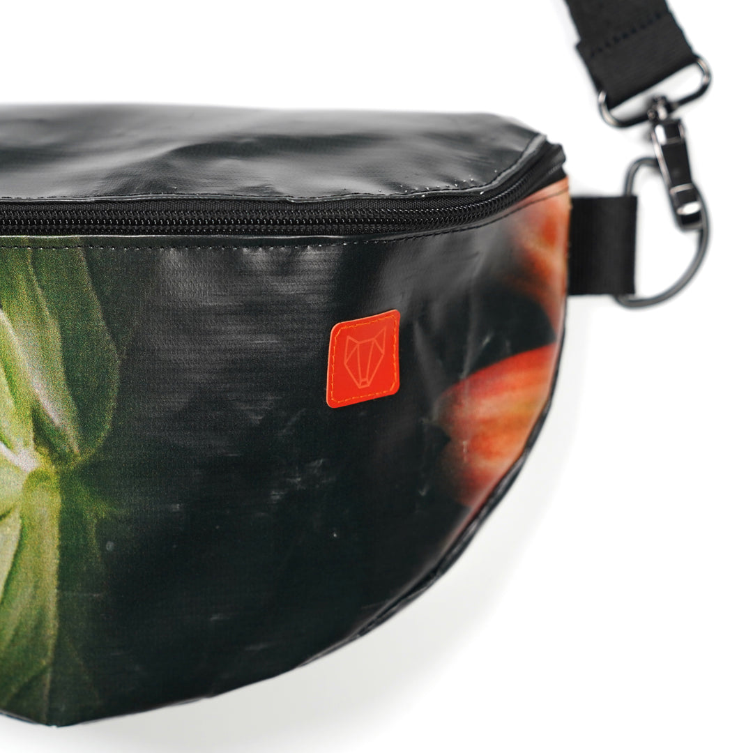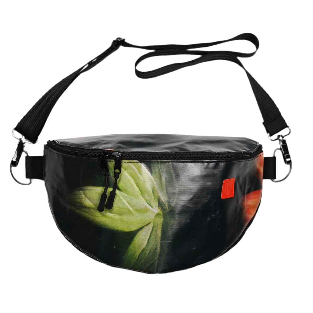 Kolorowa duża nerka wykonana ręcznie z baneru z recyklingu, tkaniny oxford typu kodura oraz pasów samochodowych. Zapinana na zamek, posiada regulowany pasek( max 120cm), możesz ją nosić tak jak lubisz przez ramię lub na pasku.