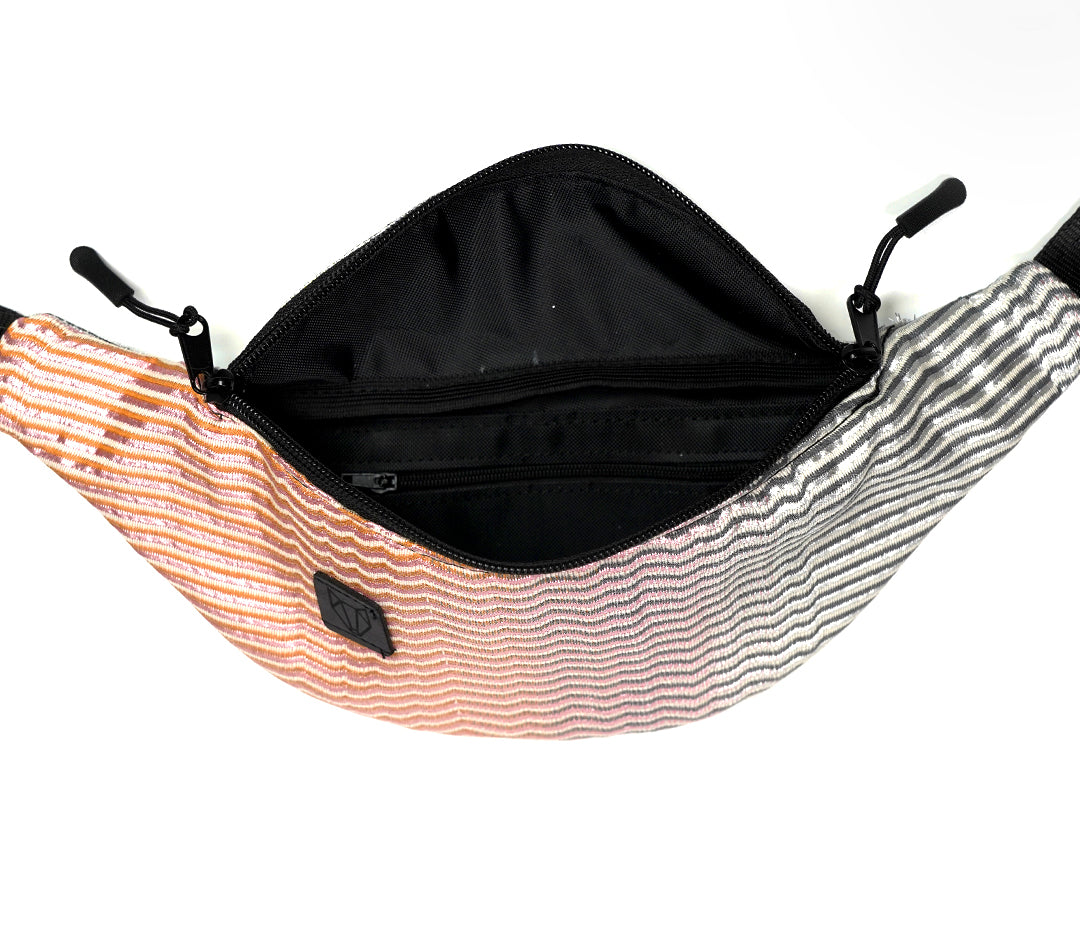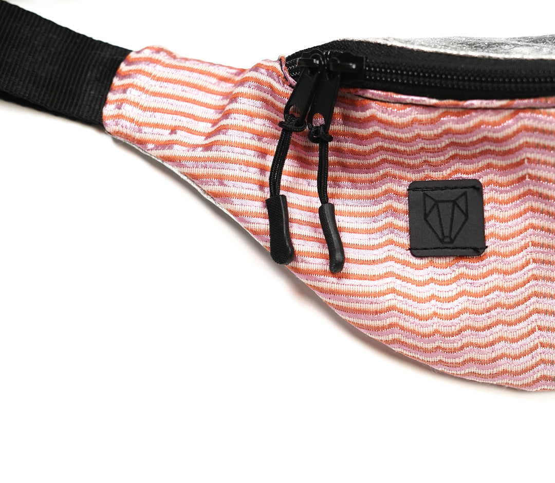Zapinana na zamek, posiada regulowany pasek( max 120cm) - możesz nosić ją tak jak lubisz na pasie lub przez ramię. Wewnątrz kieszonka zapinana na zamek.